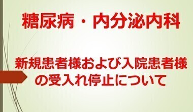 糖尿病・内分泌内科: 新規患者様および入院患者様の受入れ停止のお知らせ