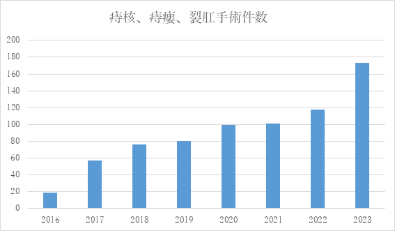 大腸肛門外科センター発足(2016年6月)以降、大腸・肛門疾患の手術件数は増加傾向にあります。