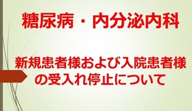 糖尿病・内分泌内科: 新規患者様および入院患者様の受入れ停止について